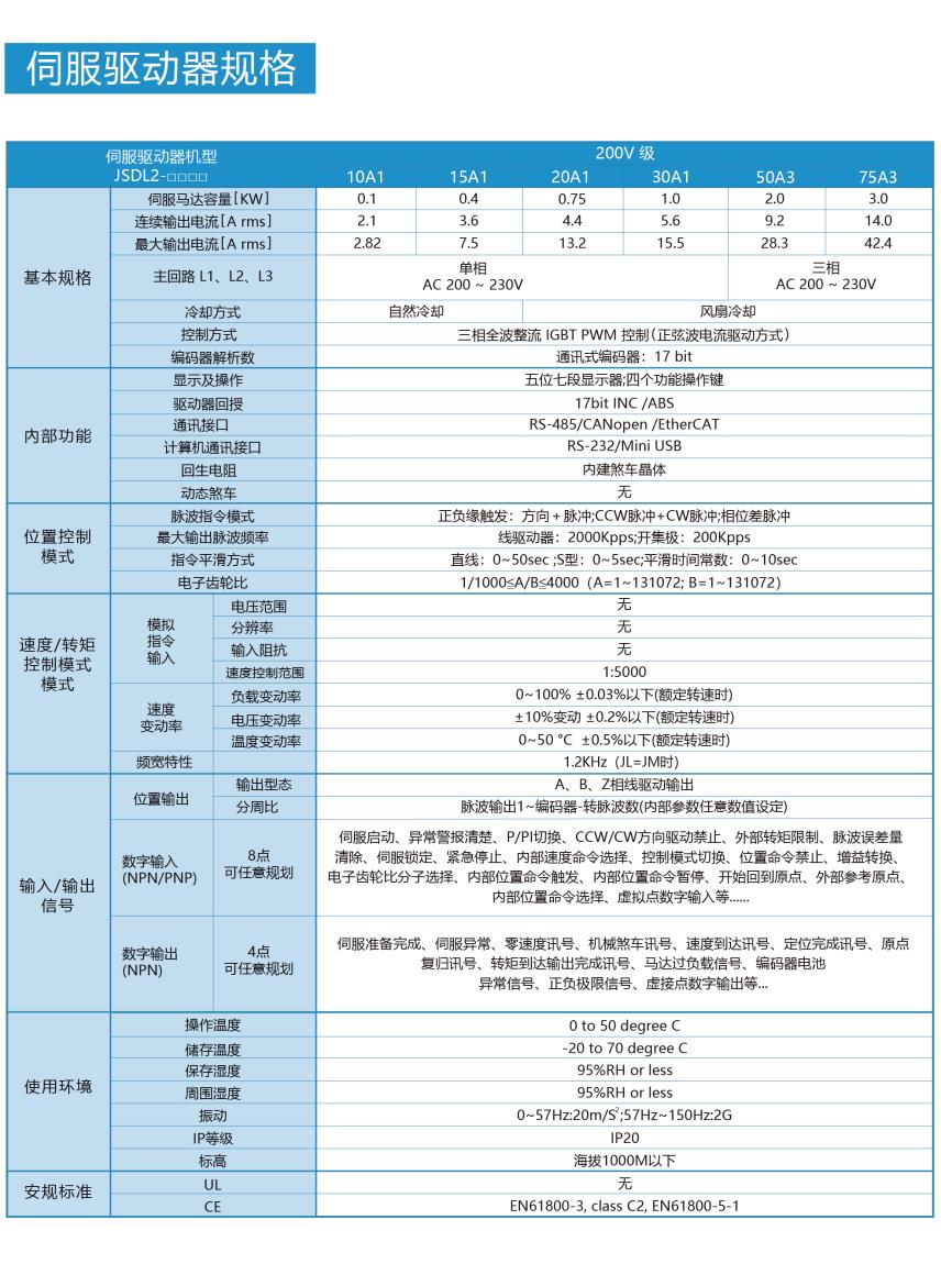 · 采用雙核心運算系統(tǒng),提高頻寬速率 · 支持17bit解析度的編碼器· 增加輸入輸出: 八組DI/四組DO · 內(nèi)建Auto-Tuning功能,簡易上手操作 · 低頻/高頻振動抑制,符合設備需求 · 支持RS-232/RS-485標準通訊 · 功率段:100W-1kW |