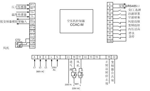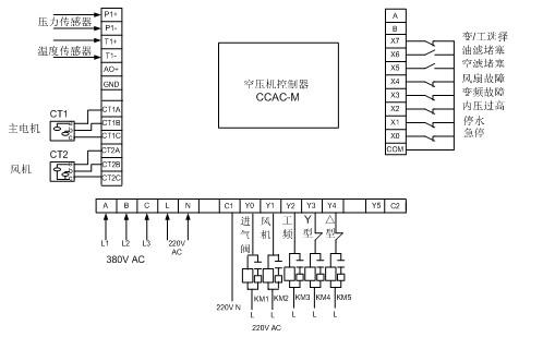 CCAC-M型空壓機控制器是本公司開發(fā)生產的高性能一體化空壓機專用控制器,針對不同的用戶群體可選用CCAC-M01(空壓機控制程式由我司設計,客戶只需設置相關參數(shù)即可,操作簡單,適用于一般空壓機生產廠家)或CCAC-M02(空壓機控制程式開放給客戶,客戶可自行設計控制程序,體現(xiàn)其空壓機之個性化特色,適用于擁有較強空壓機控制系統(tǒng)研發(fā)隊伍的生產廠家)。