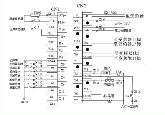 ⑷ 設(shè)備運(yùn)行正常后根據(jù)實際的用氣要求,調(diào)節(jié)合適的出氣口壓力,并使變頻器運(yùn)行電流波動在很小的范圍內(nèi)(10A以下),與電流波動相關(guān)的參數(shù)有,控制器P、I參數(shù)及變頻器ON09、CN08、CN15,可視實際情況調(diào)節(jié)。
