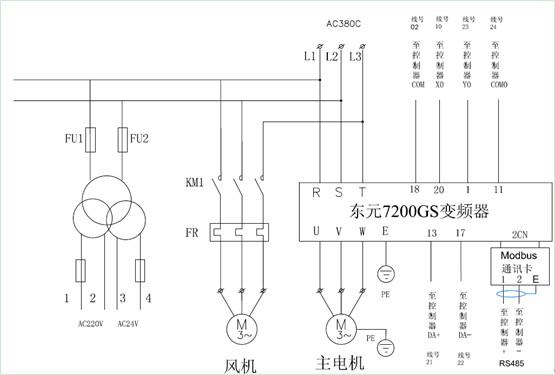 ⑴ 根據(jù)東元7200GS變頻器及臺安CCAC-M型空壓機(jī)控制器的規(guī)格,完成電源線及控制線的配線,注意變頻器外圍選購件(如:空開、斷路器、電抗器等)的連接及所用動力線的線徑、材質(zhì)。