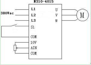 每套設(shè)備使用0.75KW變頻器和11KW變頻器;N310-2001-H1X負(fù)責(zé)拖動(dòng)牽引電機(jī)帶動(dòng)牽引輥對(duì)吹塑好的薄膜進(jìn)行牽引;N310-4015-H3X負(fù)責(zé)拖動(dòng)擠出機(jī);牽引電機(jī)規(guī)格為0.75KW,50HZ,3.1A,1400RPM,帶有減速機(jī);擠出電機(jī)規(guī)格為:380V,11KW,22.6A,1400RPM,50HZ,帶冷卻風(fēng)機(jī),規(guī)格為95W,380V,50HZ,1400RPM;