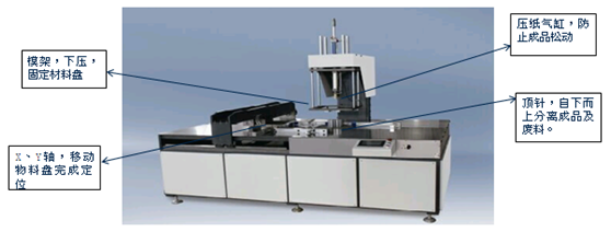 2.成品沖出后,人工將成品取出,載物臺移動到下一工件處,繼續(xù)上述步驟。載物臺通過X、Y軸伺服驅(qū)動,移動迅速、定位準確。